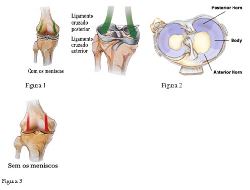 Dois tipos especiais de estruturas chamadas meniscos situam-se entre o fêmur e a tíbia, um menisco interno (medial) e um menisco externo (lateral), estando cada um situado entre um dos côndilos femorais e uma das cavidades glenoideais da tíbia (figuras 1 e 2). Estas estruturas são muitas vezes referidas como as cartilagens do joelho, mas os meniscos diferem da cartilagem articular que cobre a superfície da articulação.
